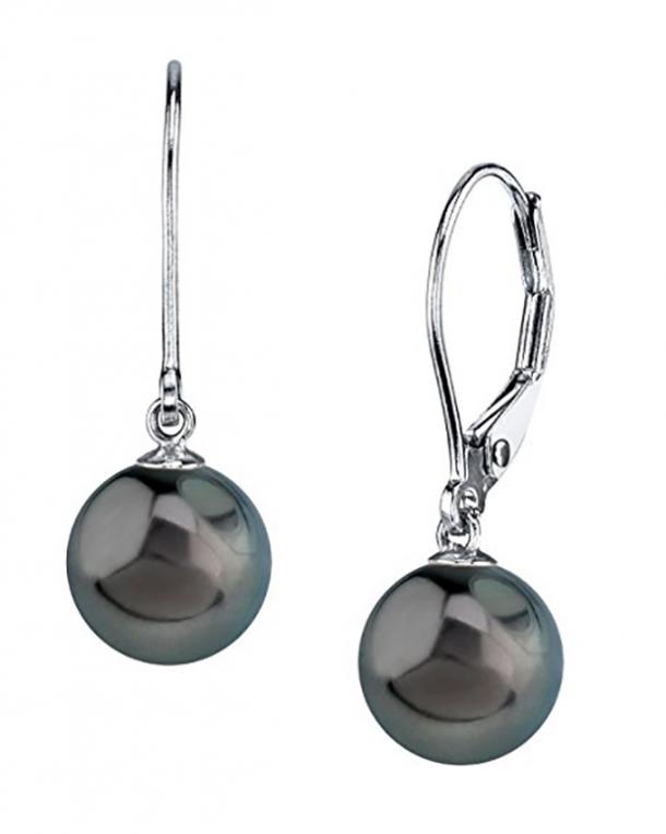 - 11. 14K Gold Round Black Tahitian Pearl Earrings