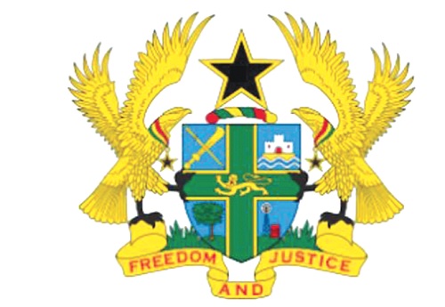 • Two Eagles, around each of whose necks hangs a black star suspended from a ribbon of Ghana colours – red, gold, and green.