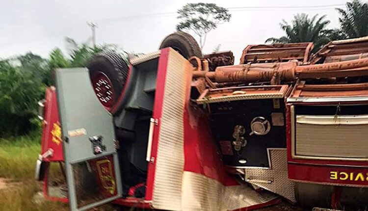 The fire tender, bearing the registration number FS 438, overturned while navigating a curve on the outskirts of Kade.