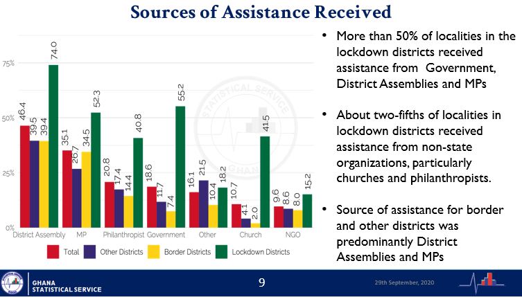 Majority of Ghanaians, however, received help with 71% of localities receiving some form of assistance to mitigate the adverse effects of COVID-19.