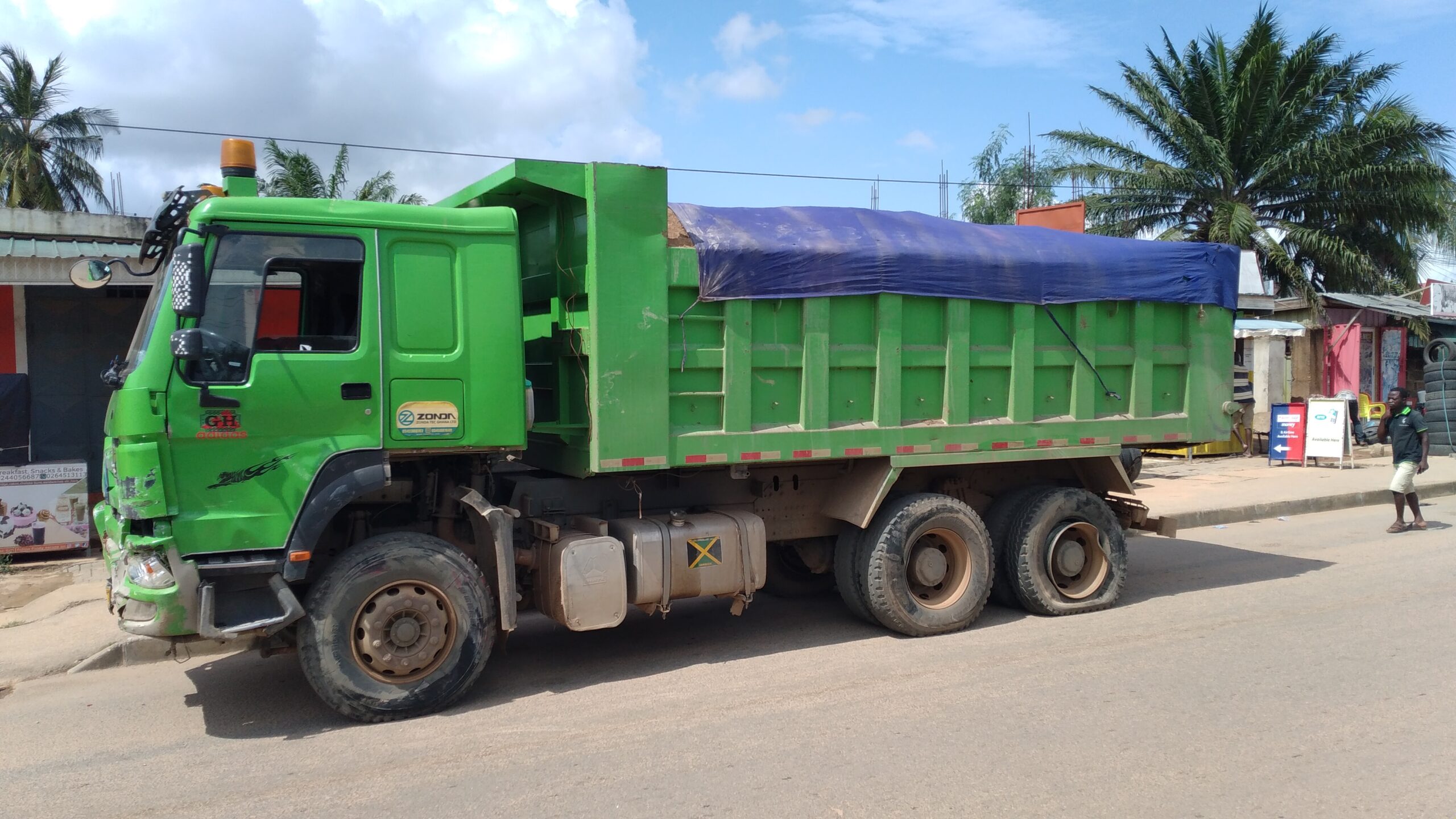 A green tipper truck loaded with sand rammed into the vehicles on Thursday, October 8, leaving a motorcycle rider unconscious.