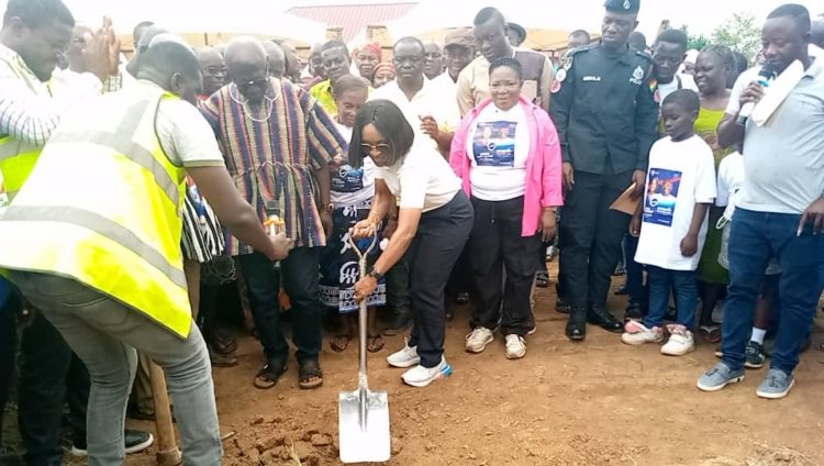 Abena Osei-Asare cuts sod for Astro Turf in Asaman Tamfoe