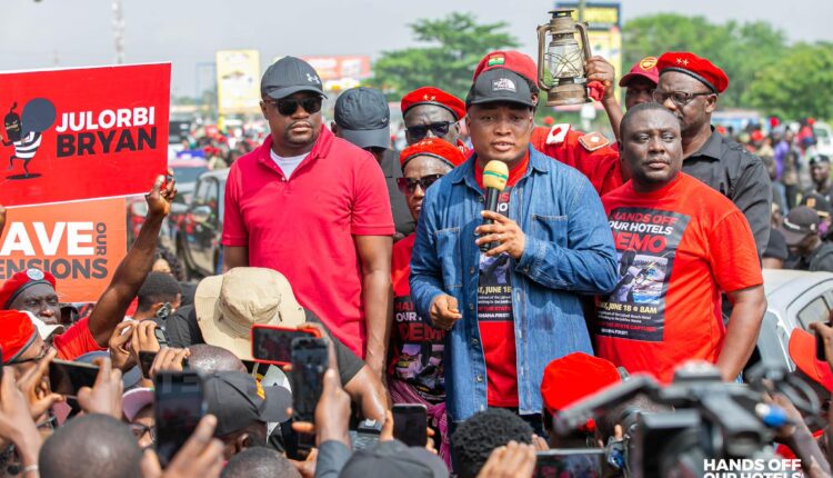 The initial protest was held to demand that the government halt the sale of a 60 per cent stake in four hotels owned by the Social Security and National Insurance Trust (SSNIT) to Rock City Hotel, a company owned by the Minister of Food and Agriculture, Bryan Acheampong.