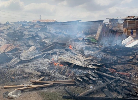 The fire destroyed 107 wooden makeshift structures occupied by more than 100 squatters. Residents tried to put out the flames using buckets of water before firefighters arrived.