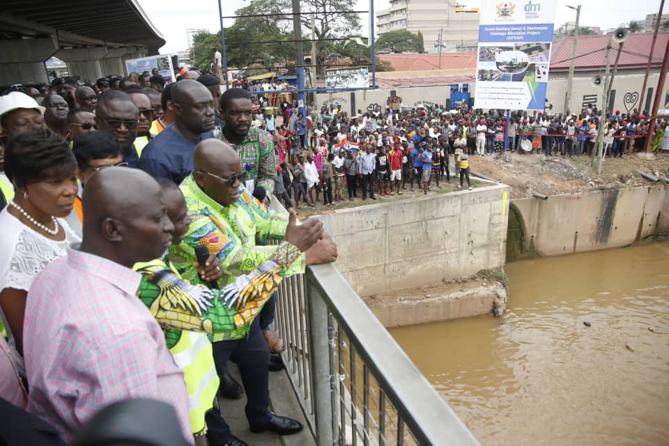 President Akufo-Addo has inspected two major projects ongoing in Accra aimed at finding a lasting solution to the perennial flooding in Accra.