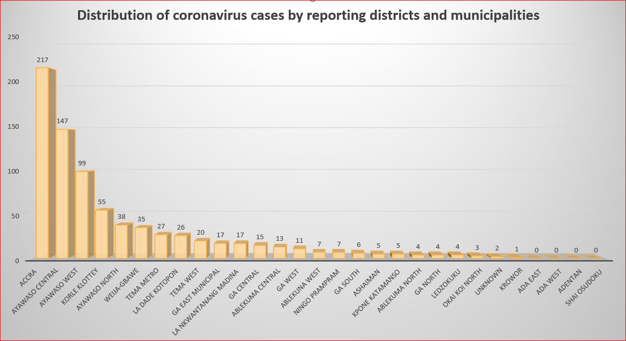 The Accra Metropolis has the highest number of coronavirus infections in the country, with 217 cases.