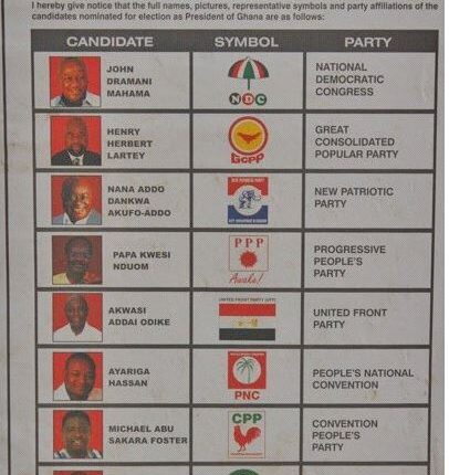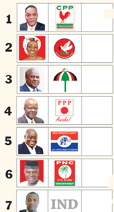 Number eleven went to Nana Konadu Agyeman-Rawlings of the National Democratic Party (NDP), and the Number twelve was Mr. Asiedu Walker, an independent candidate.