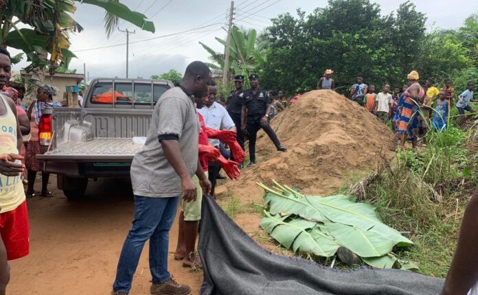 After residents discovered the body, they called on the National Disaster Management Organization (NADMO) and the Ghana Police Service, who quickly responded to distress calls and reported at the scene.