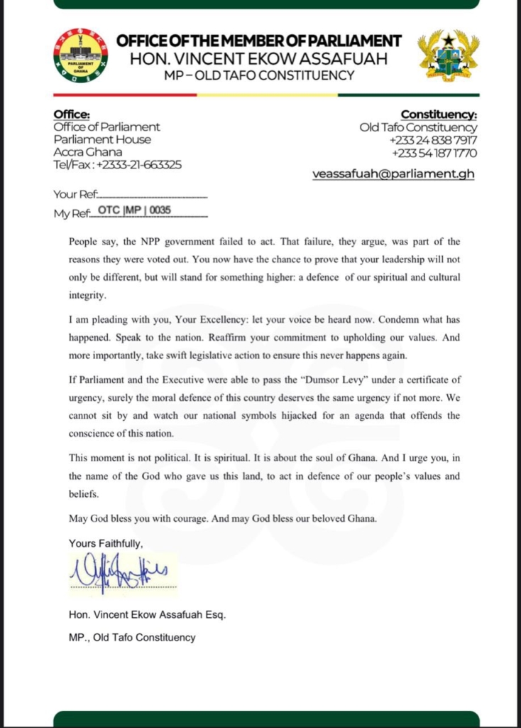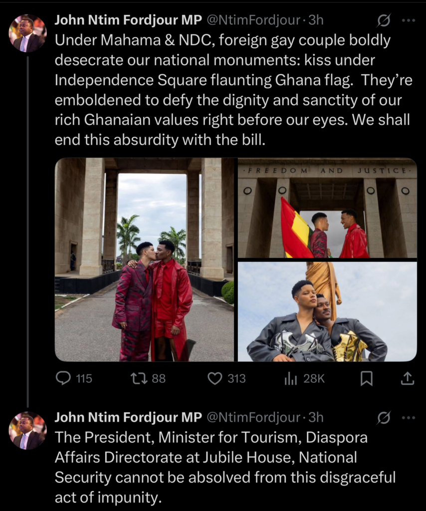Vincent Ekow Assafuah, the Member of Parliament for Old Tafo in Ghana’s Ashanti Region, has formally petitioned President John Dramani Mahama to denounce a viral video showing two foreign men, believed to be a gay couple, kissing and celebrating what looks like a wedding ceremony at Independence Square in Accra.