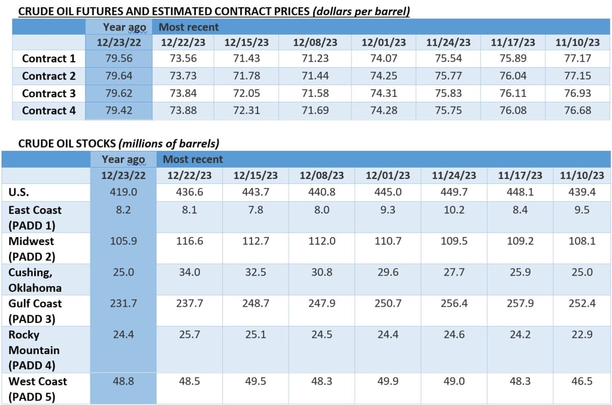 The slowing down of industry news into the Christmas period has stemmed the recent uptick in oil prices. Brent futures have marginally declined to $78 per barrel after Maersk and CMA CGM announced their resumption of transit through the Suez Canal, widely seen as a sign of impending normalization. At the same time, the few market participants still trading before New Year’s Eve shrugged off the seemingly bullish 7-million-barrel draw is US oil inventories, most likely a consequence of year-end inventory clear-out rather than a notable improvement in demand.