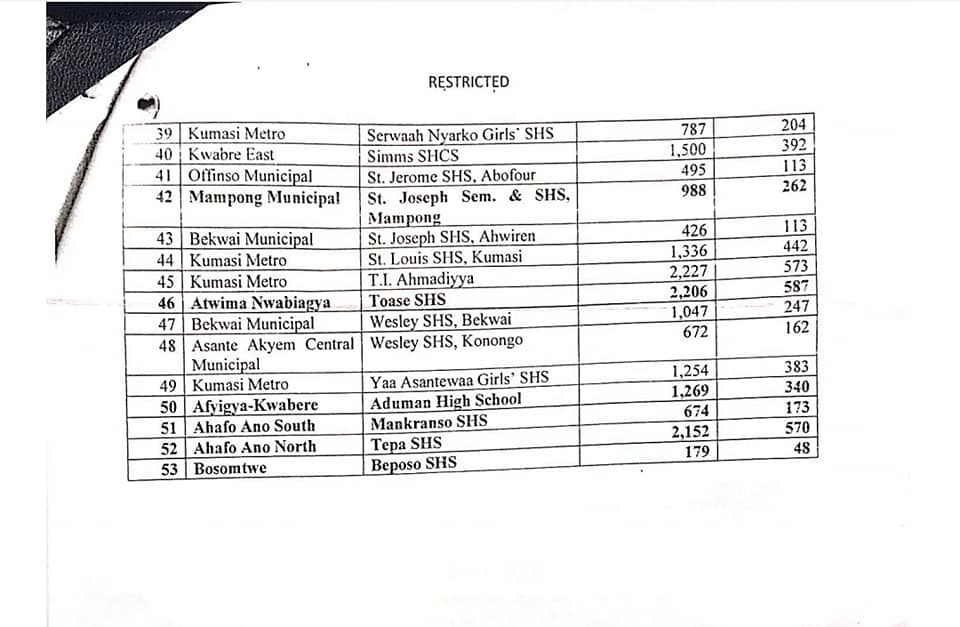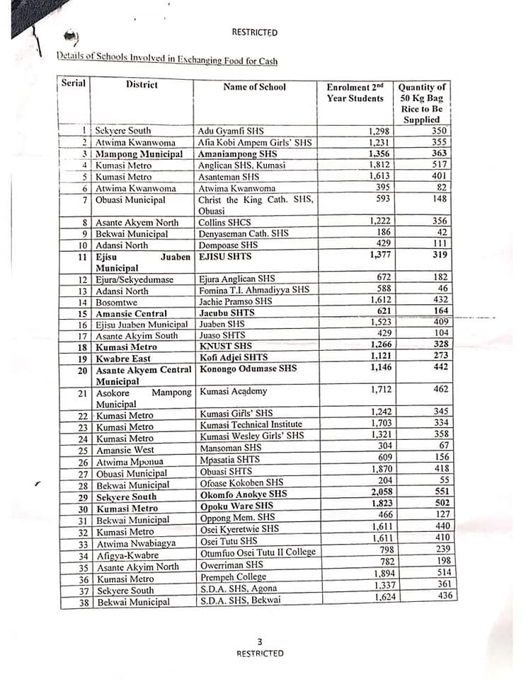 So far, 53 schools in the Ashanti Region have been cited, with some alleged to have exchanged food for cash.