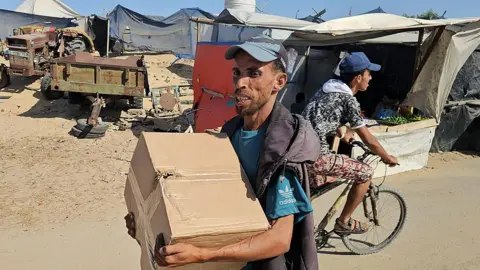 A Palestinian working with one of the local companies involved in the operation told the BBC that “dozens of Palestinian workers from three Palestinian companies are overseeing the distribution process, which runs daily from 09:00 to 19:00”.