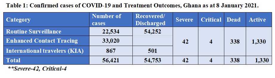 Official figures from the Ghana Health Service (GHS) indicated 298 active cases as of October 8, 2020, but this has shot up to 1,330 as of January 8, 2021, the last report released at press time.