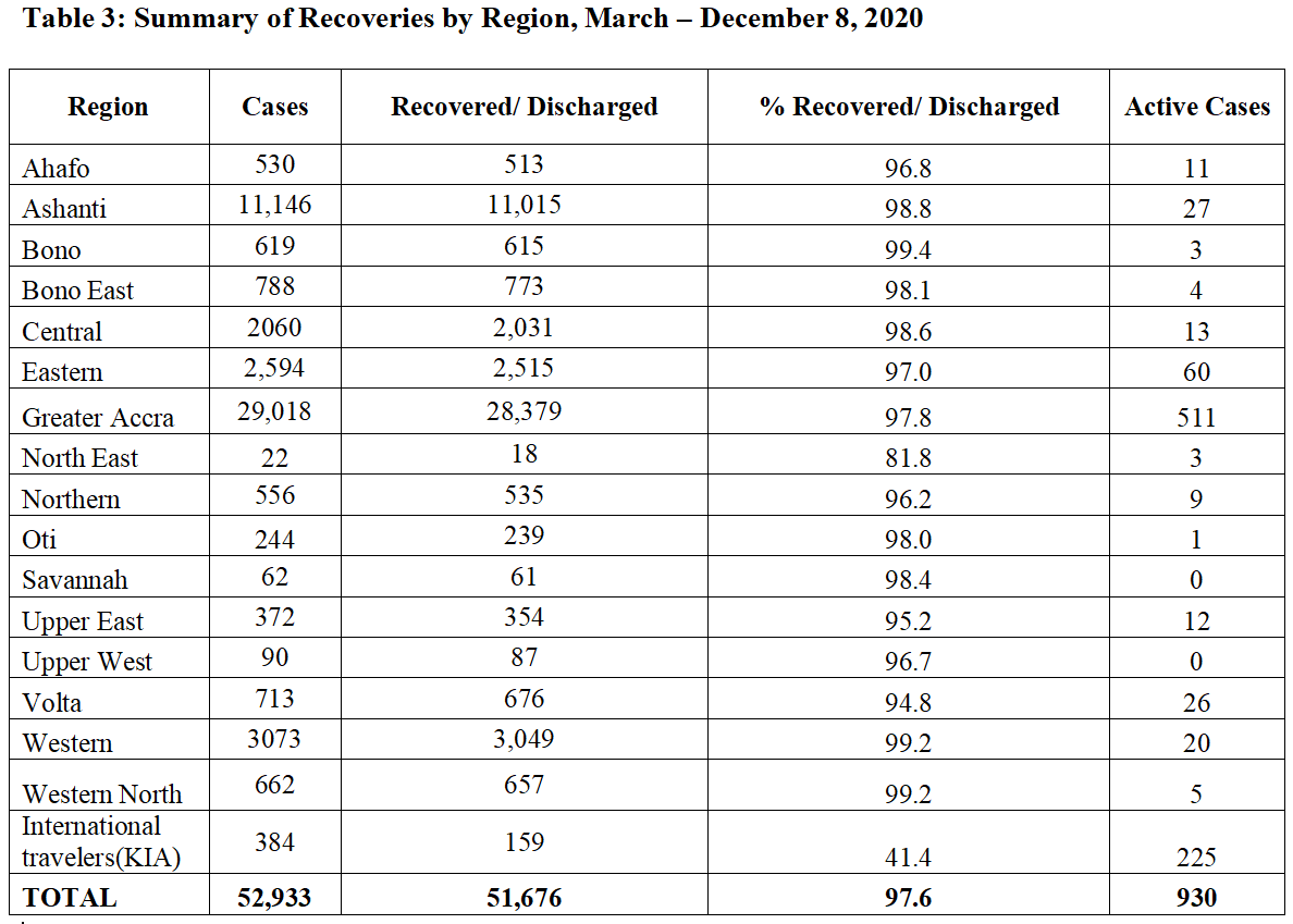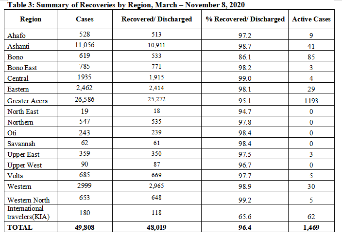 Greater Accra alone has 705 active cases representing more than 53% of the infections.