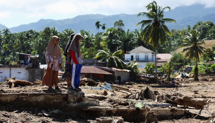 Reuters Local residents inspect an area hit by deadly flash floods following heavy rains in Palembayan, Agam regency, West Sumatra province, Indonesia, December 1, 2025Reuters