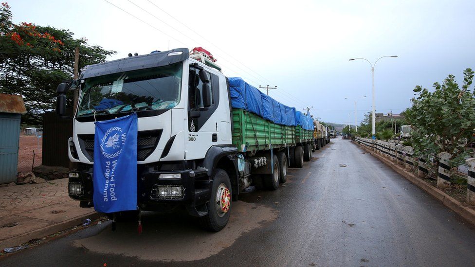 Hundreds of lorries are believed to be stuck in the city, prevented from taking the only viable overland route into Tigray.