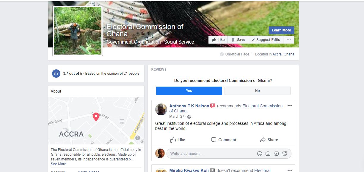 The Electoral Commission (EC)  has advised the public to ignore all social media pages bearing its name and logo which has not been verified.
