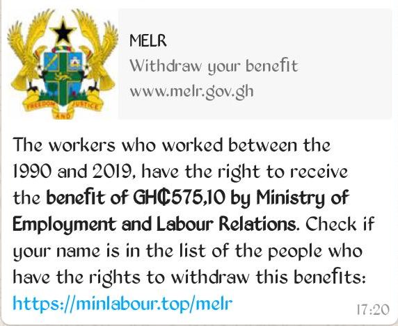 “According to said circulation, the targeted workers after checking their details on the site should then proceed to the Ministry to receive payment of benefits of Five Hundred and Seventy-five Ghana Cedis and Ten pesewas (GHC 575.10),” it said.