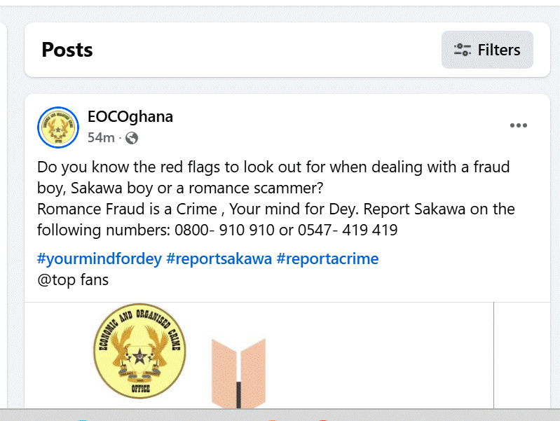 In a cautionary message shared via social media, EOCO highlighted common tactics used by these scammers, especially in the context of online relationships.