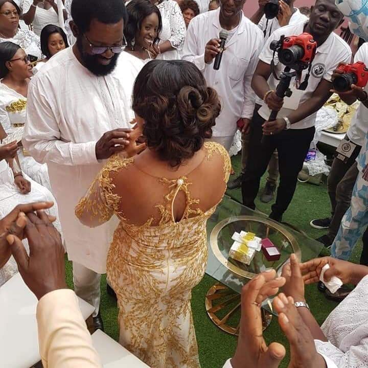 The bride was adorned in a glamorous white and gold gown while the MP beamed with smiles in his all white Kaftan.