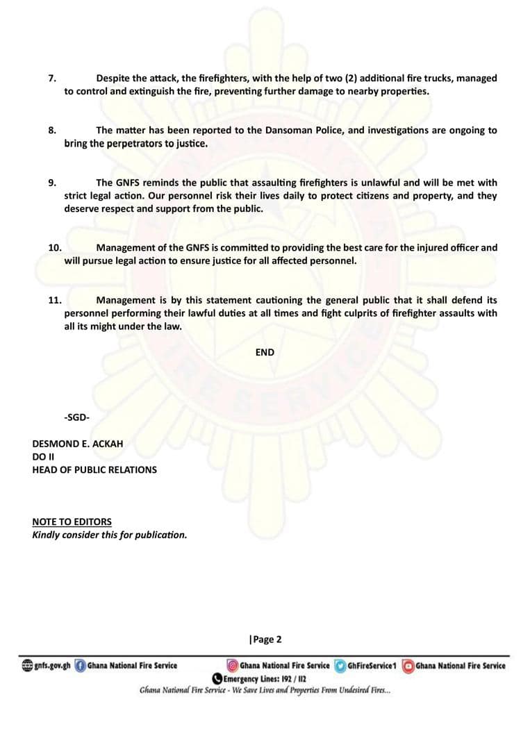 The GNFS further threatened the public that any attack on its personnel would be met with strict legal action.