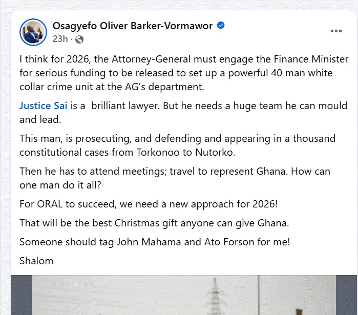 Barker Vormawor’s comments come at a time when public interest in accountability and recovery of state resources remains high, with many Ghanaians watching closely to see whether ORAL will translate into concrete prosecutions and recoveries.