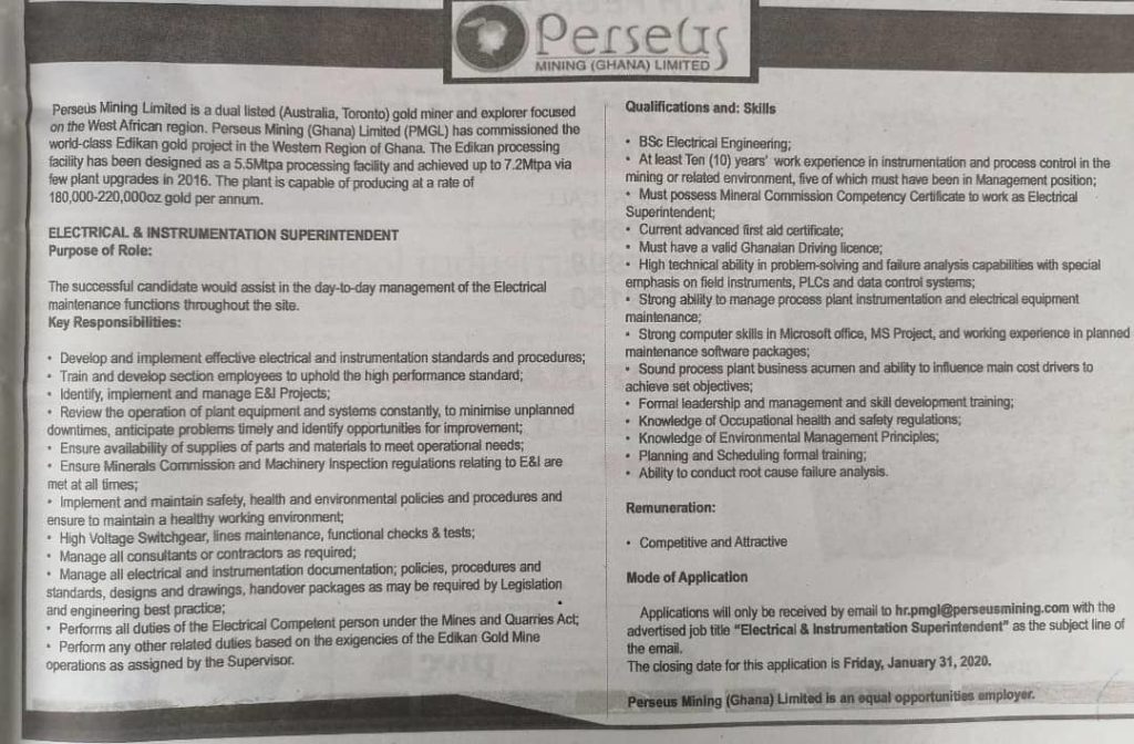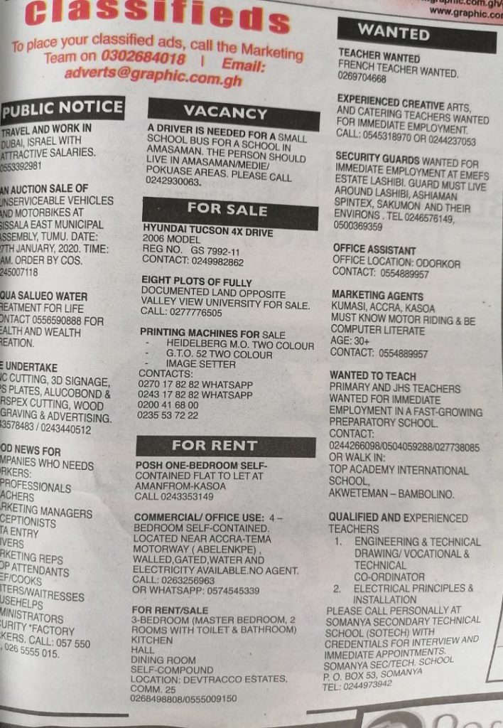 Prospective job seekers can find below the advertised jobs in the January 24, 2020 edition of today’s newspaper as published today in the paper.