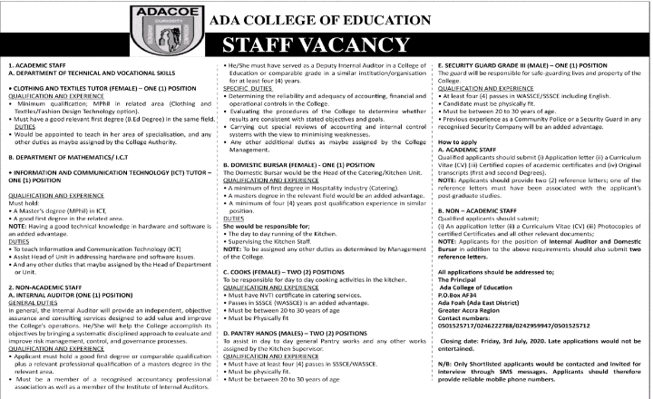Prospective job seekers can find below the advertised jobs in the June 5, 2020 edition of Daily Graphic as published in the paper today.