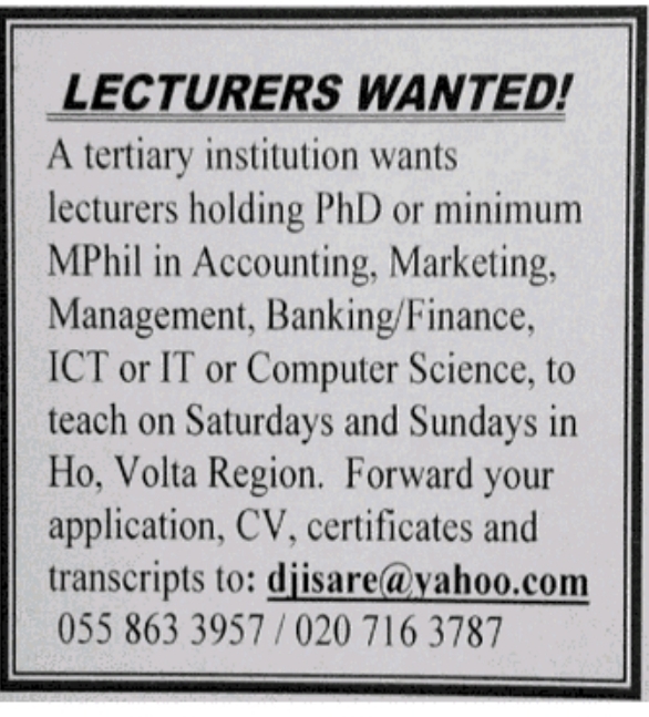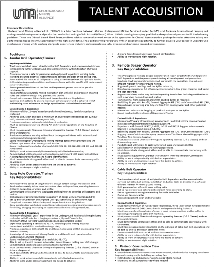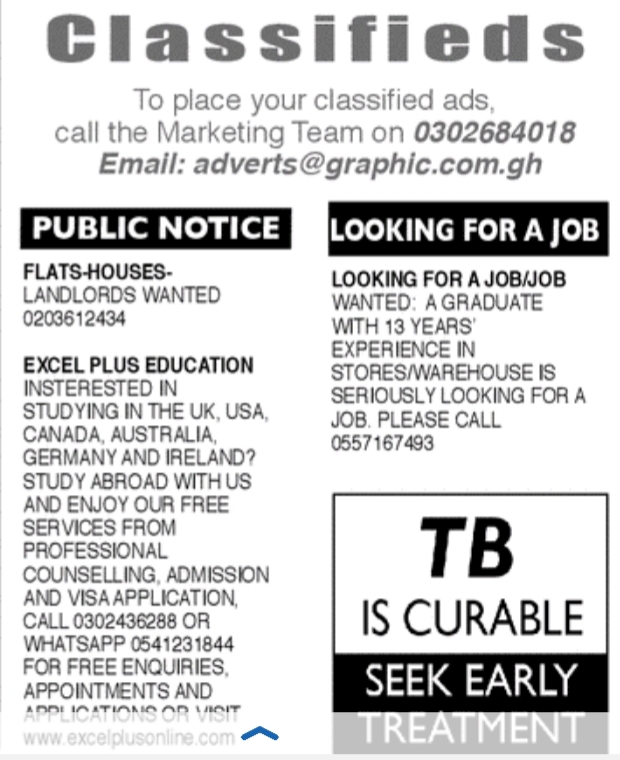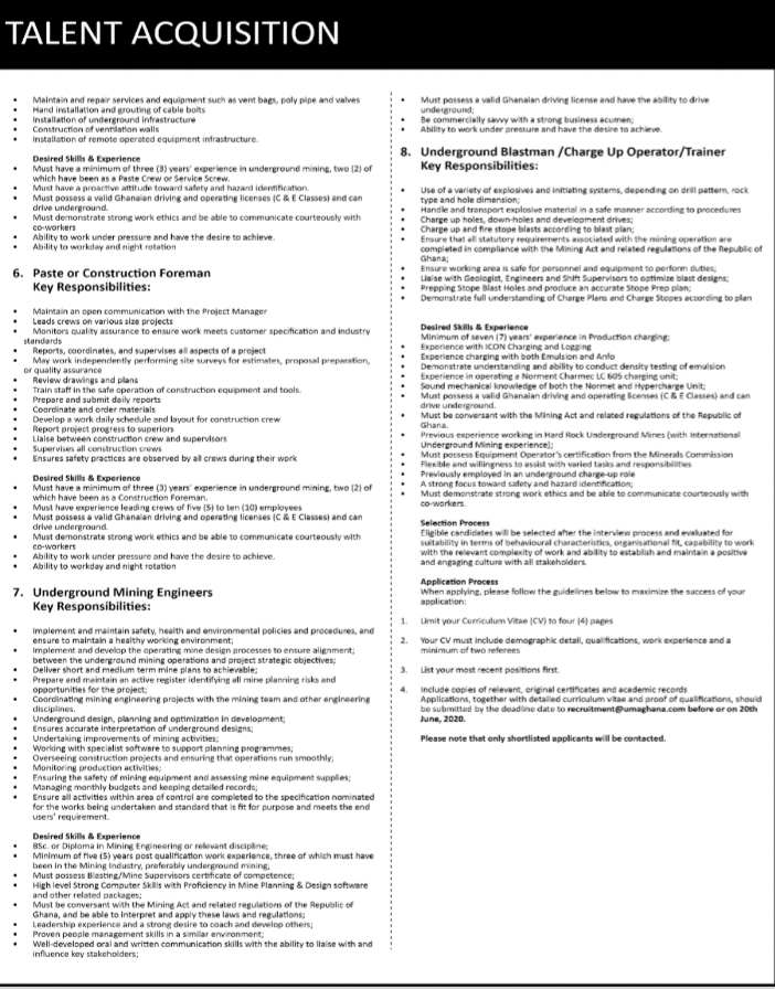 Prospective job seekers can find below the advertised jobs in the June 5, 2020 edition of Daily Graphic as published in the paper today.
