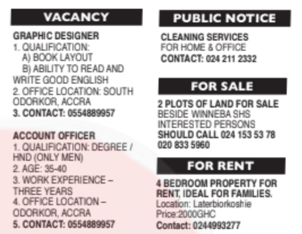 Prospective job seekers can find below the advertised jobs in the November 10, 2023, edition of Daily Graphic as published in the paper today.