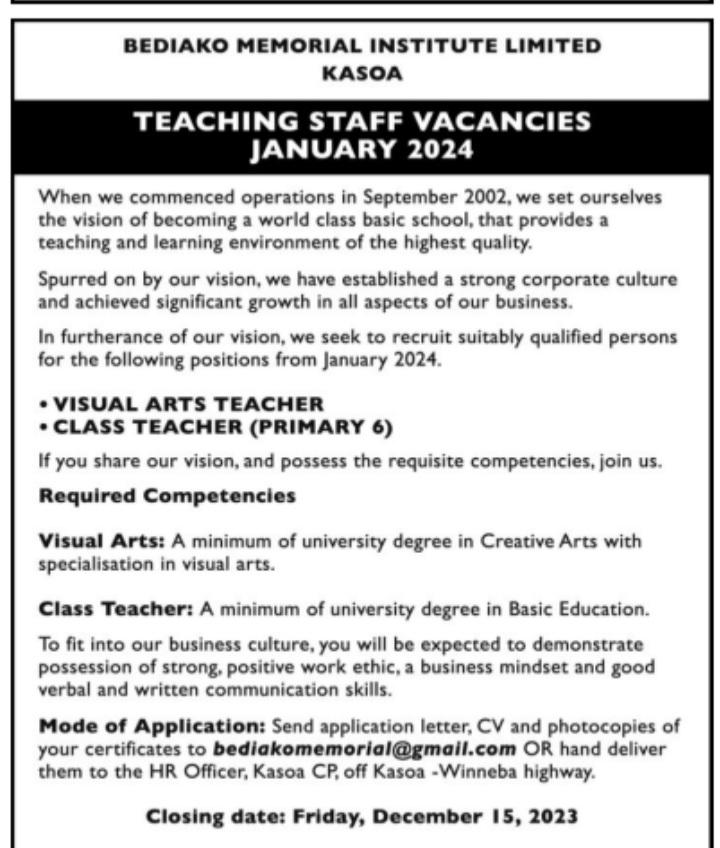 Prospective job seekers can find below the advertised jobs in the December 8, 2023, edition of Daily Graphic as published in the paper today.