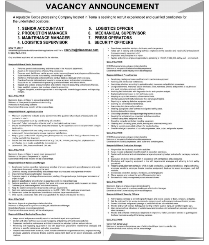Prospective job seekers can find below the advertised jobs in the April 19, 2024, edition of Daily Graphic as published in the paper today.