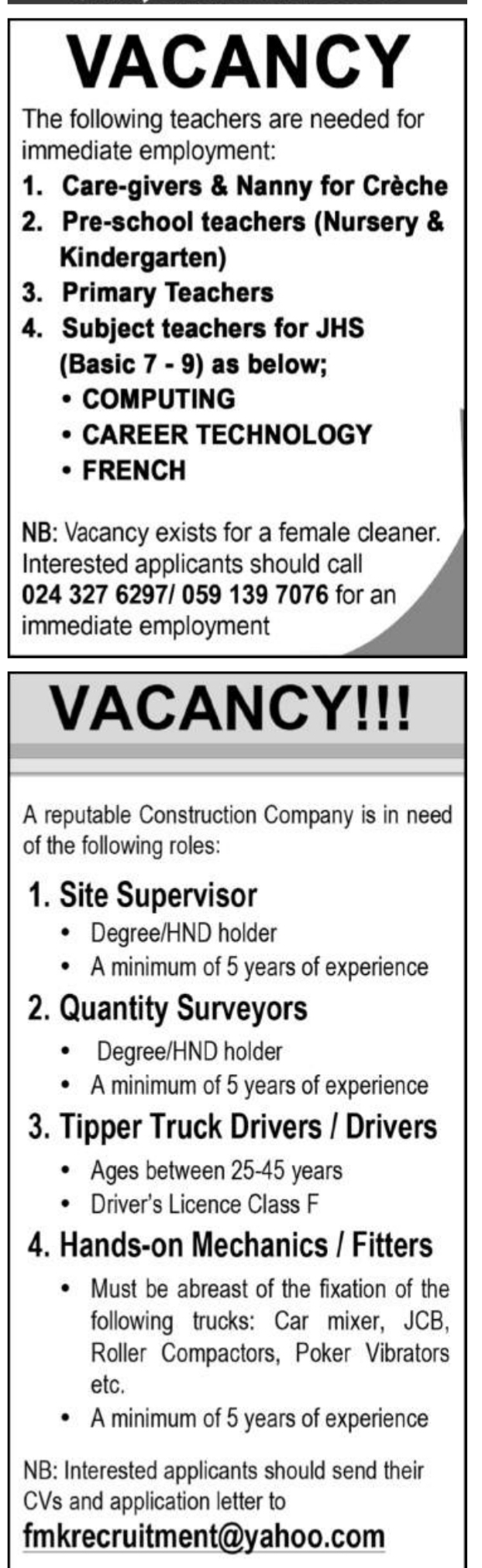 Prospective job seekers can find below the advertised jobs in the September 13, 2024, edition of Daily Graphic as published in the paper today.