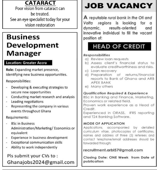 Prospective job seekers can find below the advertised jobs in the November 8, 2024, edition of Daily Graphic as published in the paper today.