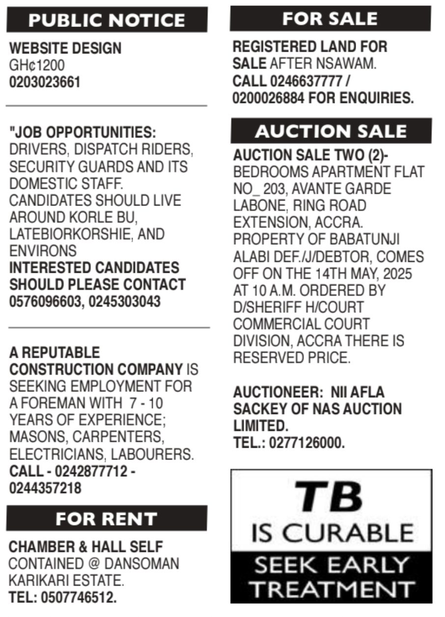 Prospective job seekers can find below the advertised jobs in the April 11, 2025, edition of the Daily Graphic as published in the paper today.