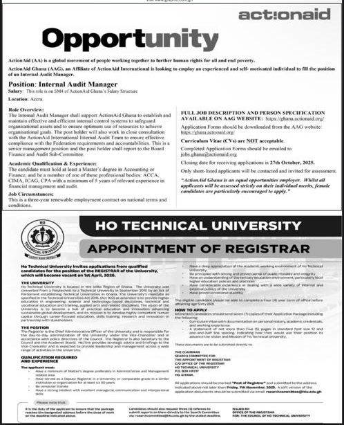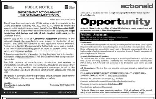 Prospective job seekers can find the advertised jobs below in the October 17, 2025, edition of the Daily Graphic, as published in the paper today.