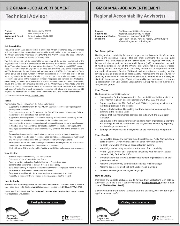 Prospective job seekers can find below the advertised job in the October 30, 2020 edition of Daily Graphic as published in the paper today.