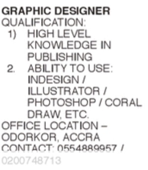Prospective job seekers can find below the advertised jobs in the November 13, 2020 edition of Daily Graphic as published in the paper today.