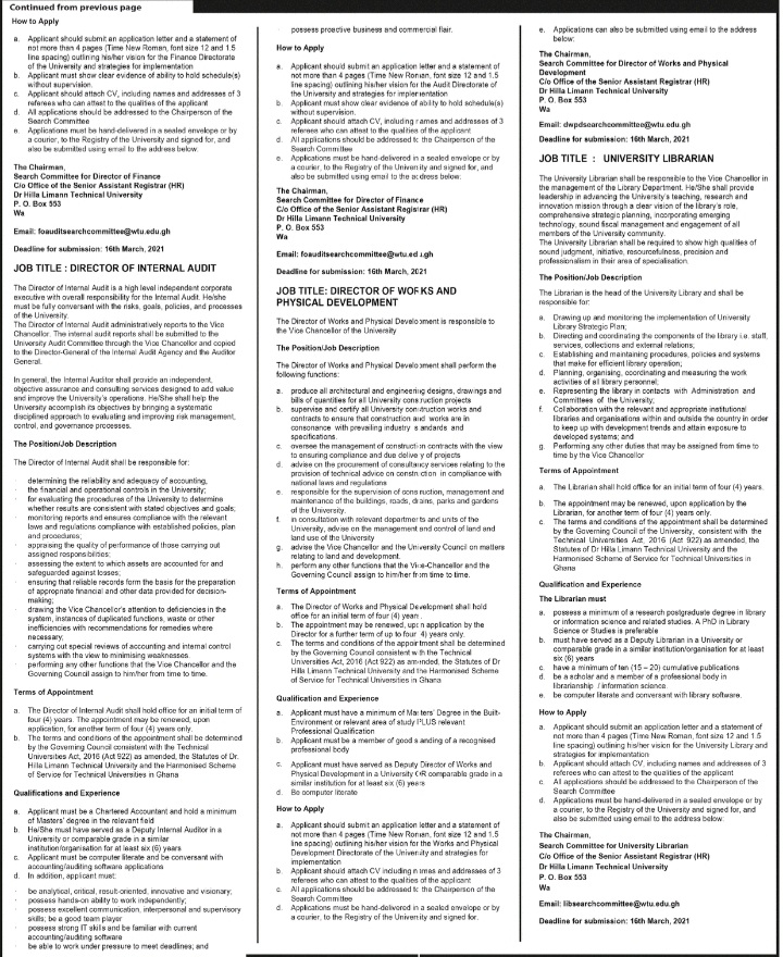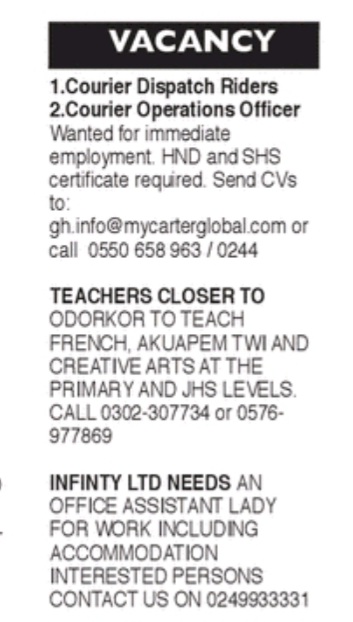 Prospective job seekers can find below the advertised jobs in the February 26, 2021, edition of Daily Graphic as published in the paper today.