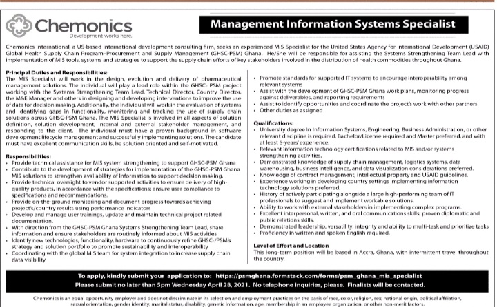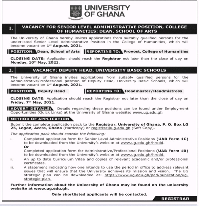 Prospective job seekers can find below the advertised jobs in the April 9, 2021, edition of Daily Graphic as published in the paper today.