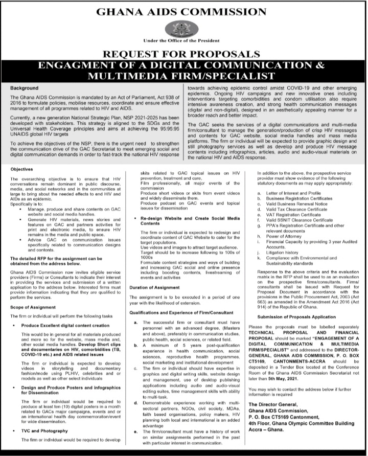 Prospective job seekers can find below the advertised jobs in the April 16, 2021, edition of Daily Graphic as published in the paper today.