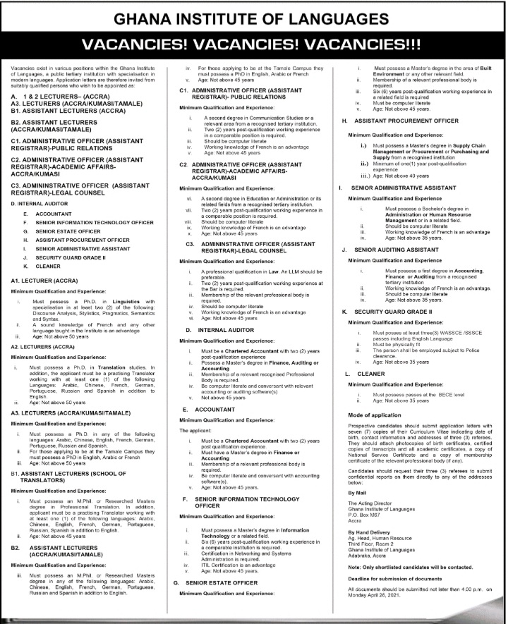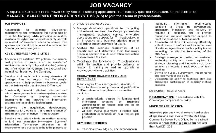 Prospective job seekers can find below the advertised jobs in the April 16, 2021, edition of Daily Graphic as published in the paper today.