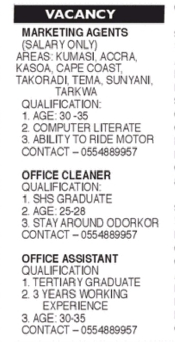 Prospective job seekers can find below the advertised jobs in the June 11, 2021, edition of Daily Graphic as published in the paper today.