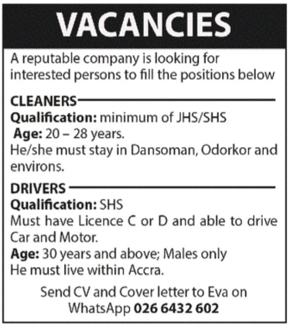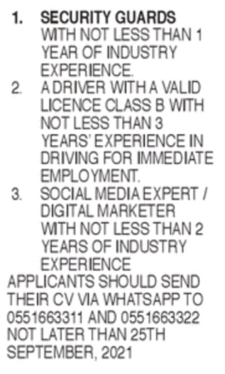 Prospective job seekers can find below the advertised jobs in the September 17, 2021, edition of Daily Graphic as published in the paper today.