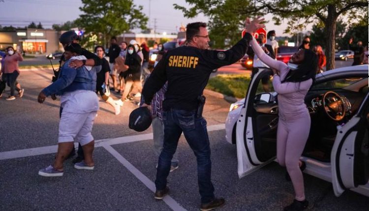 A Michigan sheriff joined protesters in Flint Township on Saturday, putting down his weapon and saying, “I want to make this a parade, not a protest.”