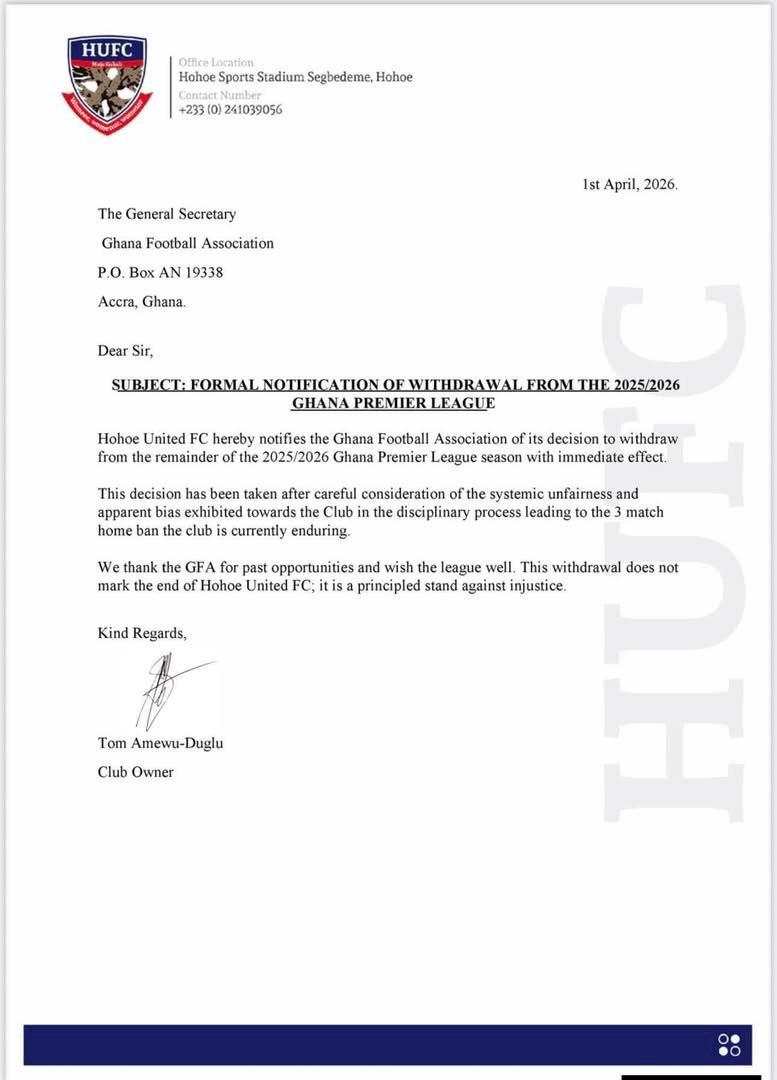 In a new official release addressing the situation, Hohoe United outlined the reasons behind their decision, emphasizing what they describe as persistent injustices. According to the statement, the club cited a series of controversial refereeing calls in recent matches, which they argue have cost them valuable points.