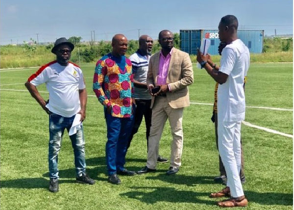 Ghana FA president Kurt Okraku and some members of the Executive Council were at the Ghanaman Soccer Centre of Excellence at Prampram on Friday to inspect the facility.