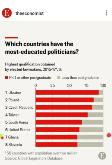 Ghana has been ranked highest in Africa and one of the countries with the most educated politicians in the world.
