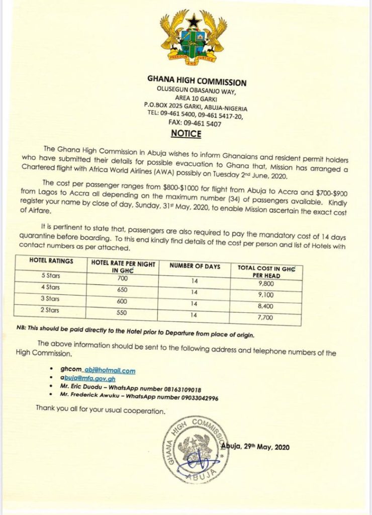 Ghanaians in Nigeria, willing to cover their cost of repatriation, are expected to pay at least $800 for their journey back home.