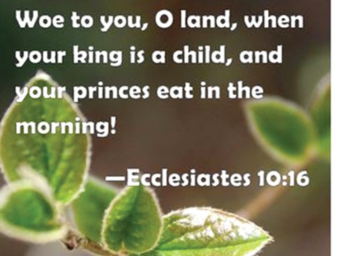I use the text from Ecclesiastes 10:16, where it identifies the woes of the land, in an attempt to diagnose a problem.